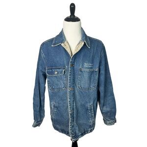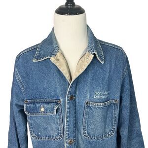 Vintage 90s Sony Music Distribution Embroidered Denim Chore Jacket Mens L Large