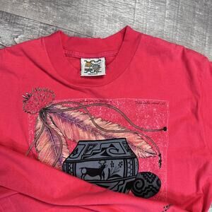 Vintage 90s Southwest Pottery Art Shirt Womens L Coral Cuffed Rivets USA Made