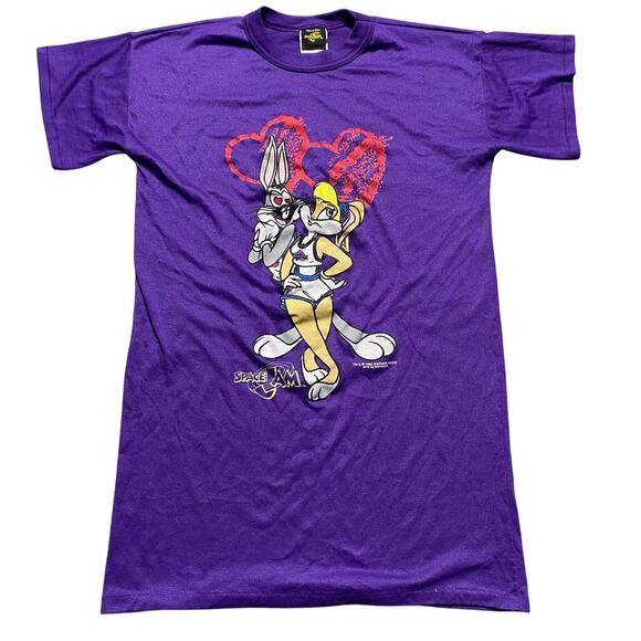 Vintage 90s Space Jam Movie Bugs Lola Bunny Hearts Warner Bros Purple Tee