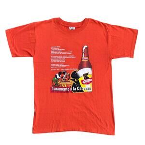 Vintage 90s Spanish Beer T-Shirt Mens S/M Gallo Cervesa Jumamento Orange
