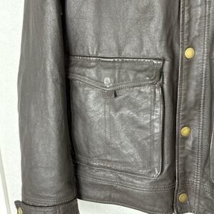 The Vintage St. John's Bay Brown Leather Bomber Flight Jacket in Men's size M is a stylish and classic piece of outerwear. Made from high-quality leather. this jacket features a zip and snap closure and a bomber style design. Perfect for those looking for a versatile and timeless piece to add to their wardrobe, this jacket exudes a rugged yet sophisticated vibe, ideal for everyday wear or special occasions.