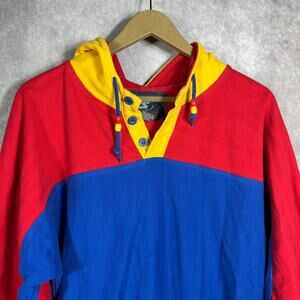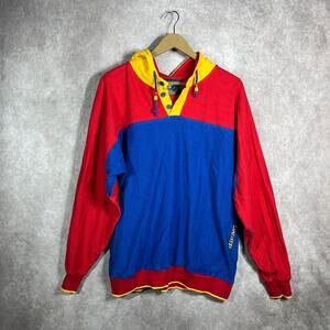 Vintage 90s Starter Hoodie Sweatshirt Mens Medium Red Blue Yellow Tri Color