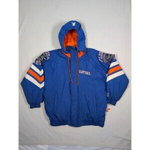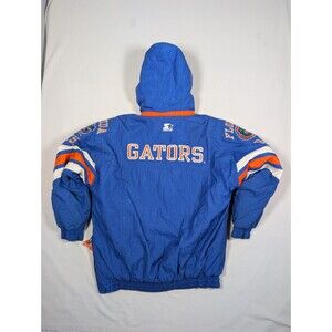 Nice men's vintage 90's University of Florida Gators State Jacket in size medium. There are some stains but no rips. The Starter zip pull is missing. You can still zip up the jacket but it is a little harder without the pull. Please see pictures for measurements.
