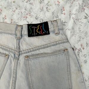 90s vintage steel jeans high waisted cutoffs denim shorts with contrast stitch