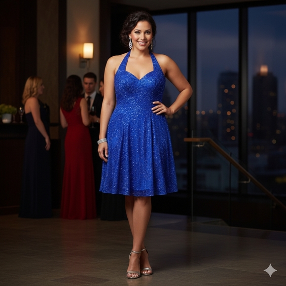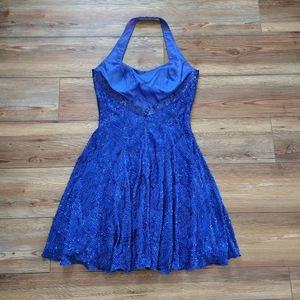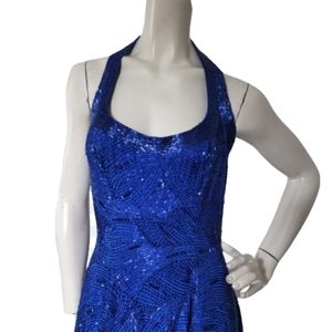 Vintage 90's Stephen Yearick Prom Dress Womens 10 Blue Beaded Halter