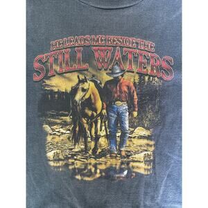 Vintage 90s “Still Waters” Cowboy Christian Graphic Tee – Made in USA – L
