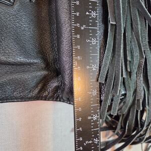 Vintage early-1990s Street Legal by Bermans black leather fringe jacket.