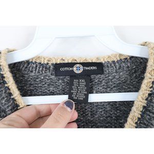 Vintage 90s Streetwear Mens 2XL XXL Blank Wool Blend Knit V-Neck Sweater Gray