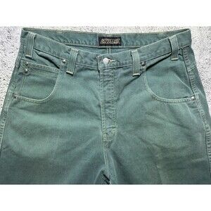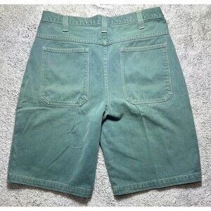 Step into classic 90s style with these vintage Zonz green denim Bermuda shorts. Made with durable denim and featuring a relaxed, baggy fit, theyre perfect for skater, grunge, or streetwear looks. These shorts sit at a mens size 38 on the tag but measure closer to a 37 waist. Finished with a 13 inseam and 14 rise for that true 90s oversized vibe. Excellent condition perfect for collectors or everyday wear.