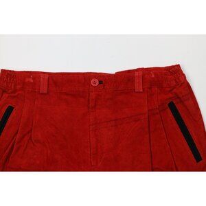 Vintage 90s Streetwear Mens Size XL Distressed Pleated Suede Leather Shorts Red