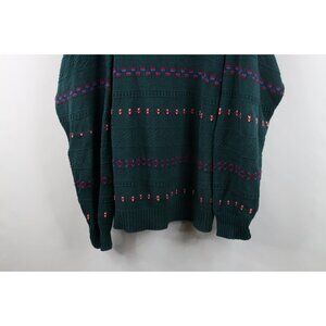 Vintage 90s Streetwear Mens XL Distressed Fair Isle Knit Crewneck Sweater Green