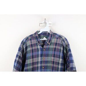Vintage 90s Streetwear Mens XL Faded Cotton Weave Knit Button Down Shirt Plaid