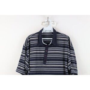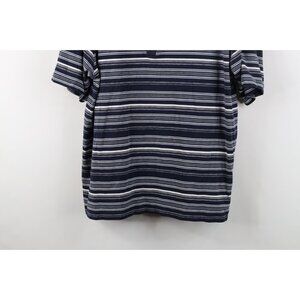 Vintage 90s Streetwear Mens XL Faded Striped Fair Isle Knit Golf Polo Shirt Blue