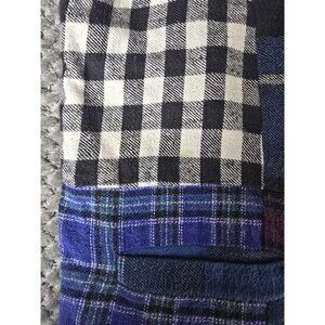 Unique Patchwork Design: Features a striking, intentionally mismatched pattern of various flannel plaids in vibrant blues, classic reds, and black/white checks.