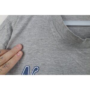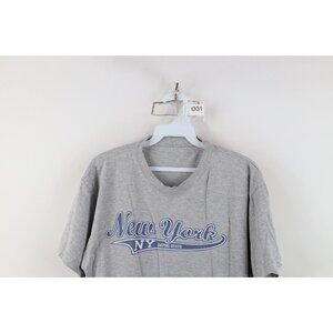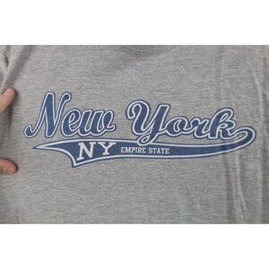 Vintage 90s Streetwear Womens Small Faded Spell Out New York Script T-Shirt Gray