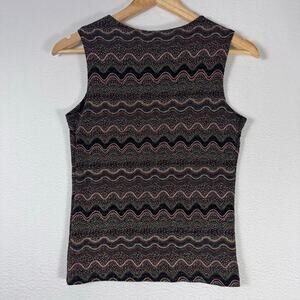 Vintage 90s Stretch Tank Dot Painted Stippled Wavy Lines Sparkles Jeweled Look S