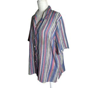 Vintage 90s Striped Button Up Shirt XL Short Sleeve Lightweight Collared
