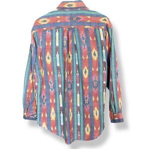 Vintage 90s Striped Button-Up Shirt Southwestern FLAWS Men Size Large Cotton