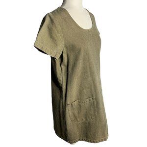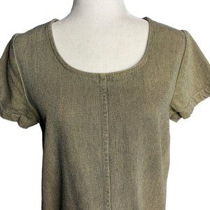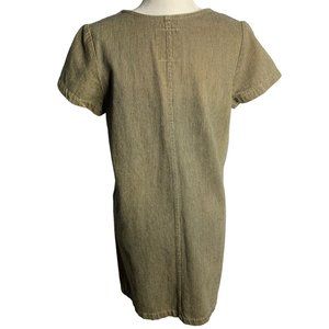 Vintage 90s Studio 25 Denim Mini Shift Dress M Brown Blue Short Sleeve Pockets