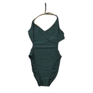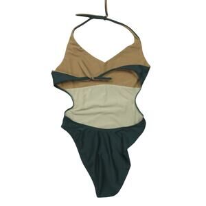 Vintage 90s Studio La Blanca Olive Green One Piece Swimsuit Cut Out Halter Large