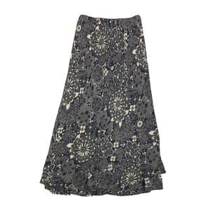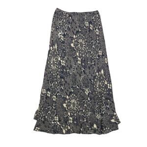 Vintage 90s Style & Co black and brown floral lace print midi skirt 6P