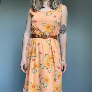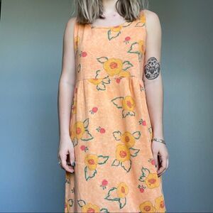 Vintage 90s Styleworks Novelty Fruit Peach Summer Maxi Tank Cotton Dress Sz L