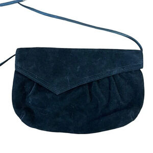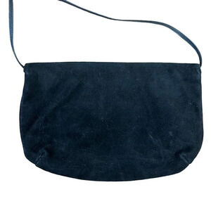 Vintage 90s Suede Purse with Thin Shoulder Strap Black 11” X 7”