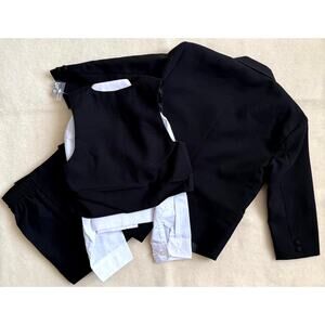 Vintage 90s Suit Set Boys Size 3T Black White Polyester Blend Formal 4-Piece