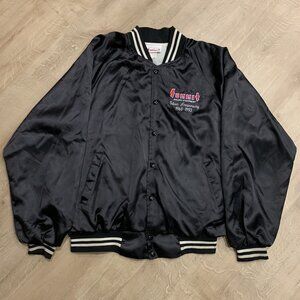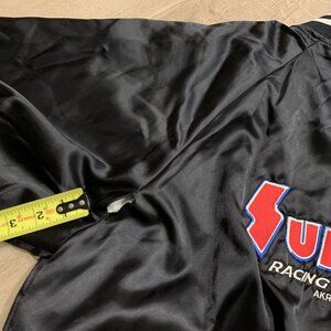 Vintage 90s Summit Racing Satin Bomber Jacket Men's XL Black 1993 Embroidered Silver Anniversary Equipment Akron Ohio Snap Button Retro Car Motorsports Grunge