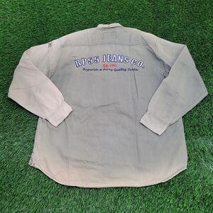 VINTAGE RP55 BUTTON-UP SHIRT, 90S REYNOLDS & PERRY APPAREL, SUN-FADED GREEN SHIRT, BAGGY FIT VINTAGE SHIRT, LARGE SIZE VINTAGE BUTTON-UP, RP55 JEANS CO CLOTHING, 90S STREETWEAR SHIRT