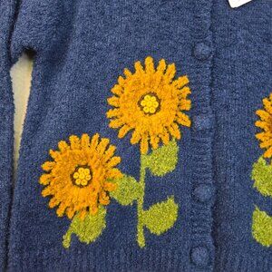Vintage 90s Sunflower Cardigan Blue Medium Chunky Grannycore Wool New Deadstock