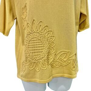 Vintage 90s Sunflower Embellished Yellow Shimmer Baby Tee Short Sleeve sz M / L