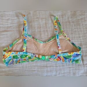 Vibrant floral bikini top with adjustable straps. Perfect for summer.