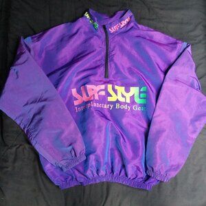 Vintage 90s Surf Style Pullover Neon Windbreaker Jacket