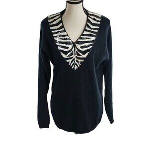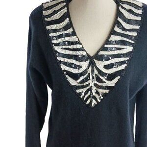 Vintage 90s Sweater Black Angora Wool Zebra Sequins Winter Womens Size M