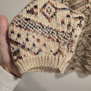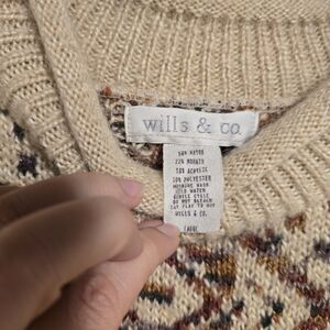 Wills & Co vintage 90s pullover Sweater. Mohair rayon blend. Beige, cream color with multicolor Moroccan style design. Mock neck turtleneck.
