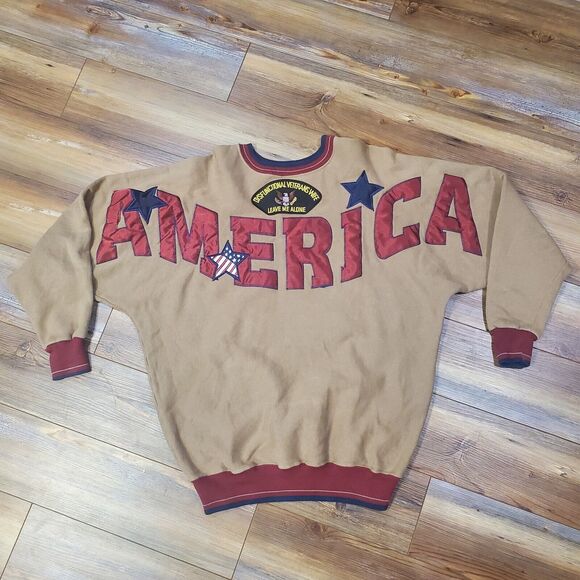Vintage 90s Sz Large America MADE IN USA Spell Out Stitched Crewneck Sweatshirt