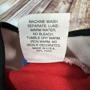 This sweatshirt is in good, lightly worn condition. No holes or rips. There is some discoloration on the inside collar (which can't be seen when worn) and the white on the footballs from the red coloring of the sweatshirt running into the white when it was washed. Please see pictures for measurements and more details on condition. Thank You!!