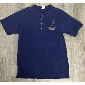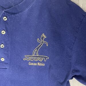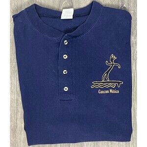 Vintage 90s T Shirt Short Sleeve Henley Tee Surfing Cancun Mexico Blue Men Large
