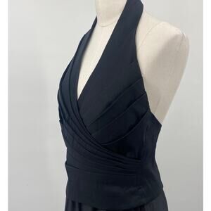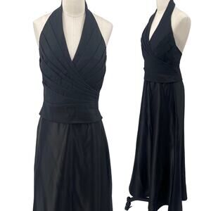 Vintage 90s Tadashi Shoji Halter Gown Pleated Bodice Fit & Flare Maxi Black