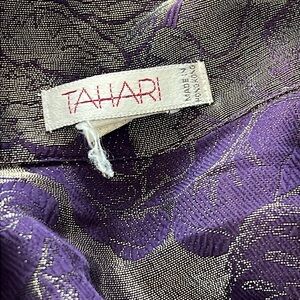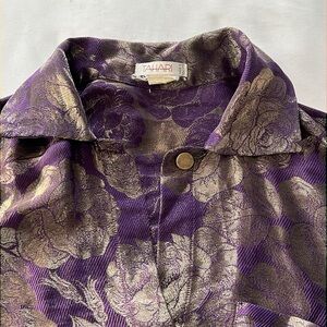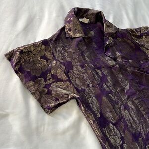 Vintage 90s Tahari Silk Blend Purple Blouse with Gold Flowers