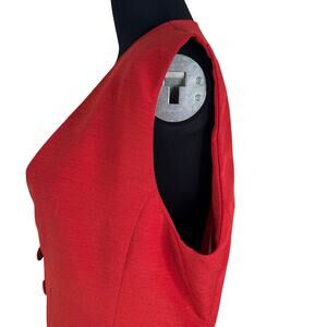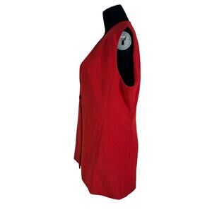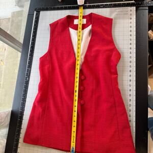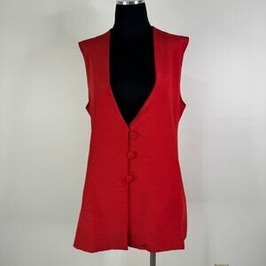 Vintage 90s Tailored Texture: Red Linen Blend Longline Vest - Quiet Confidence!