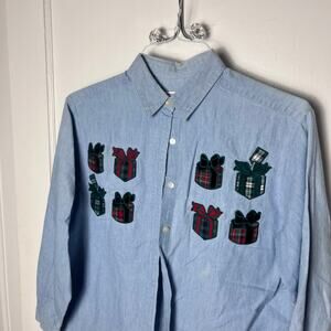 Vintage 90s Talbots Chambray Button Down Present Patch Cute Long Sleeve Shirt S