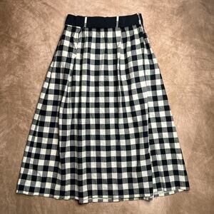 Vintage 90s Talbots Black & White Plaid Checkered Belted Dark Academia Maxi Skirt