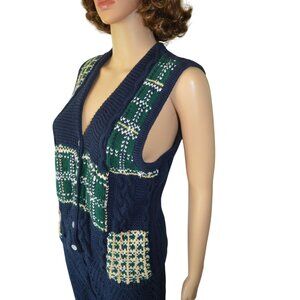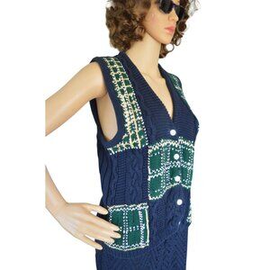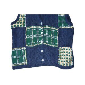 Vintage 90s Talbots Preppy Plaid Sweater Vest Navy Blue Green Womens Size Small