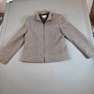 Vintage 90s Talbots Wool Silk Linen Tweed Jacket Brown Zip Front Women’s 6