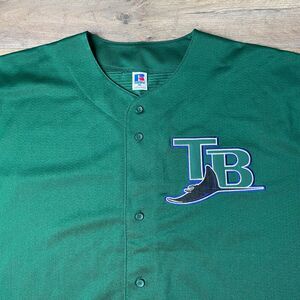 Vintage 90s Tampa Bay Devil Rays Jersey Men's 2XL Green Russell Athletic 1107