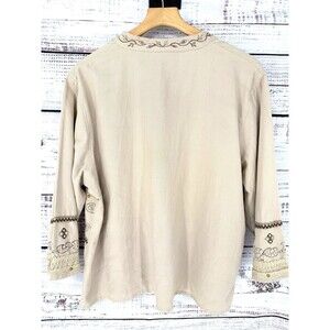 Vintage 90s Tantrums Khaki Jacket Embroidered Floral Button Size 2X Artsy