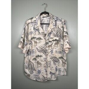 Vintage 90s Tapestry African Animal Safari Button Down Shirt XL Short Sleeve