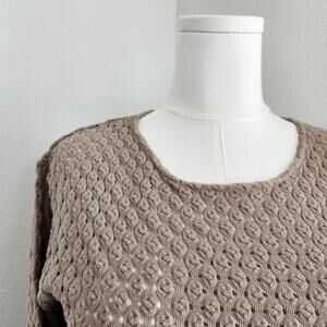Vintage 90s Taupe Brown Open Knit Long Sleeve Pullover Sweater Top Neutral L